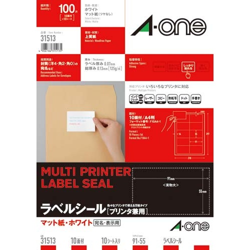 上質紙で様々なプリンタに対応した、名刺サイズ(91×55mm)のラベルシール。10面10枚入。