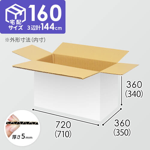 1100×800mmのカゴ台車に3面×5段積める、納品向けダンボール箱。内寸は724×334×354mmで、宅配160サイズに対応しています。