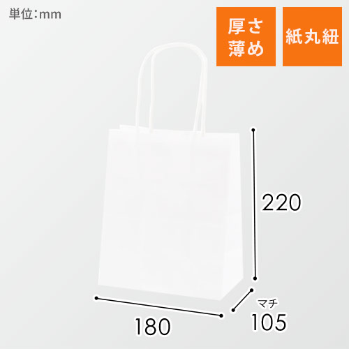 低コストで持ちやすい!白色の手提げ紙袋。薄手で格安ながら持ち帰りに最適です。コスメショップや本屋など、店舗でのお持ち帰りにいかがでしょうか。
