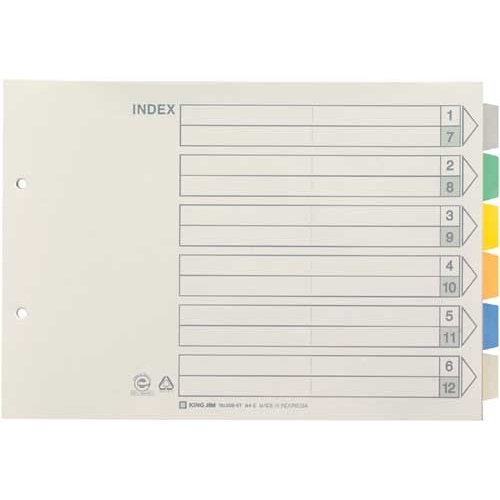 A4横型、6山のカラーインデックス。10組入りでたっぷり使えます。再生紙を使用しています。