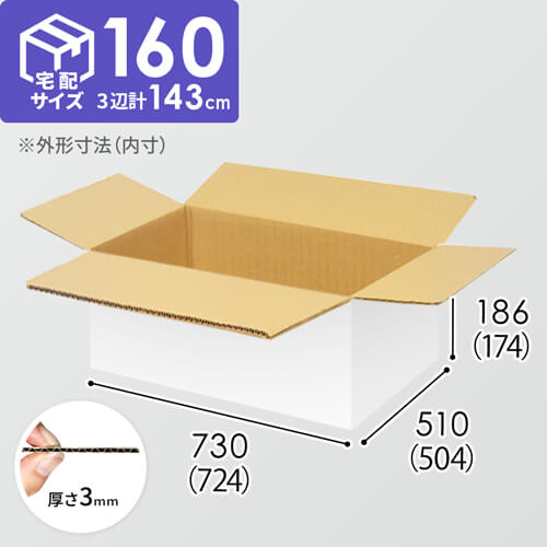 高さ360mmの部分に調節用の折り目があり、高さ変更可能な白色ダンボール箱。高さ変更により、宅配140サイズから160サイズまで対応できます。緩衝材・発送コストの削減に!