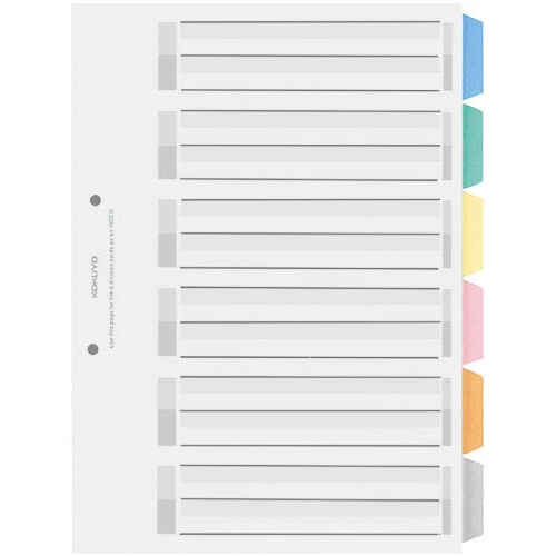 コクヨのカラー仕切カードPP。A4縦、6山、5組入り。丈夫なPP製で、見出し記入も可能!