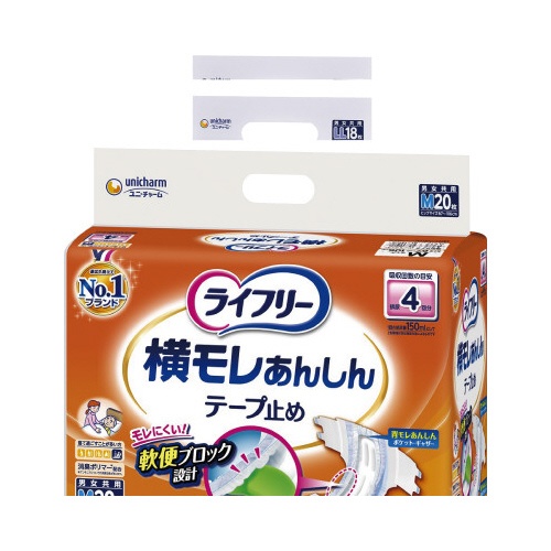 ブロック状吸収体で型くずれを防ぎ、長時間もしっかり吸収。消臭ポリマー配合でニオイも安心。Mサイズ(67〜106cm)。