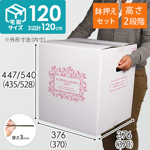 鉢3号~7号が固定できる中枠がセットになった、宅配120サイズのフラワーギフトボックスです。
