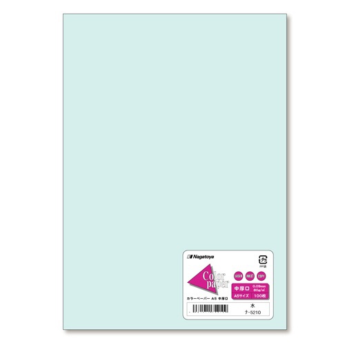 A5サイズの水色カラーペーパー。中厚口100枚入りで、レーザー・インクジェット・コピー機に対応!