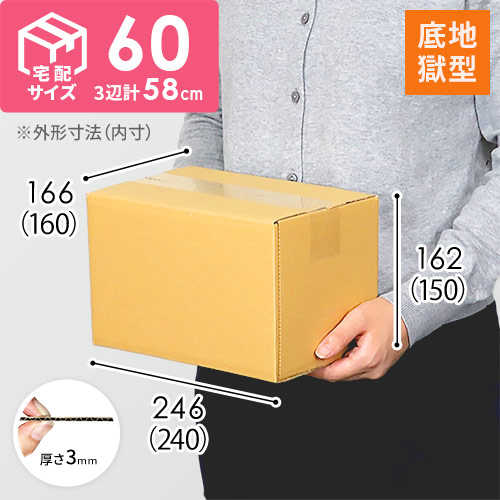 底面を順番に折り込んでいくことで簡単に組み上がる、宅配60サイズのダンボール箱。出荷量の多いショップ様におすすめです。