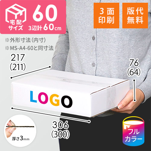 宅配60サイズ、底面A4サイズの印刷ダンボール(MS-A4-60と同寸法)