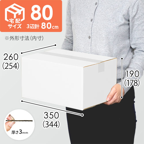 「80B」と同サイズ(内寸)のダンボール箱。宅配80サイズに対応しています。人気のサイズの材質違いをお求めの方にお勧めです。