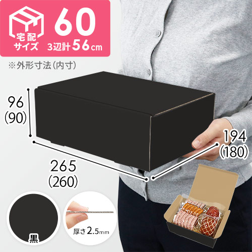表面に黒色のカラーライナーを使用した宅配60サイズ対応ダンボール箱。高級感ある見た目に仕上がるため、通販商品の発送やパッケージなどにおすすめです。