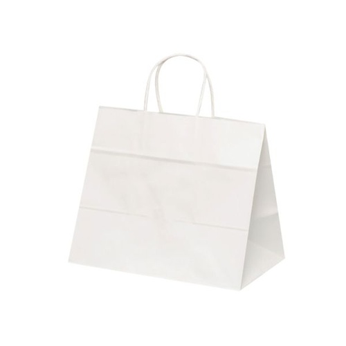 店舗のテイクアウトや持ち帰りに最適な無地の紙手提袋です。片艶晒120g/㎡のしっかりした材質で、汎用性高くお使いいただけます。
