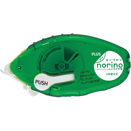 プラス ノリノプロ キレイにはがせるタイプ 本体 緑 10個。22mロングテープ搭載で長持ち!