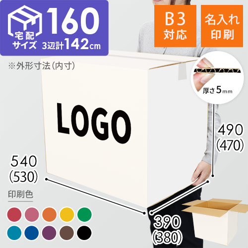 宅配160サイズのダンボールに、ロゴやイラストなどお客様ご希望のデザインを印刷できます。