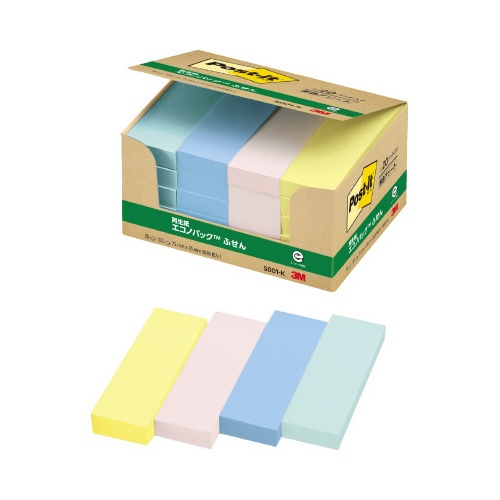 古紙100%の再生紙ふせん!たっぷり20冊のエコノパックでオフィスに常備!75×25mmでメモに最適!