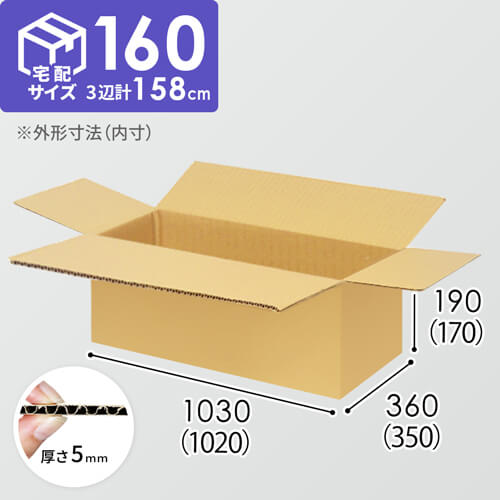 1100×800mmのカゴ台車に2面×10段積める、納品向けダンボール箱。内寸は1020×350×170mmで、宅配160サイズに対応しています。