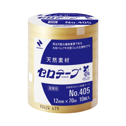 12mm幅×70m巻のセロテープ、10巻パック。長尺で交換の手間を軽減!