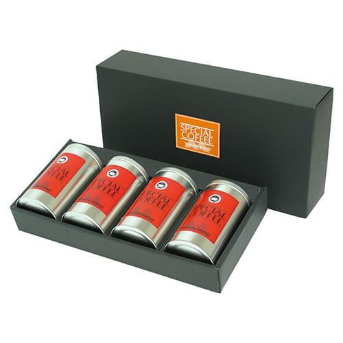 138mm×直径75mmの100g缶×4本にピッタリなギフトパッケージコーヒーのギフト箱にいかがでしょうか。