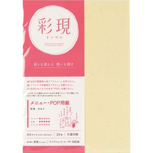 A4サイズの和紙風メニュー・POP用紙。金銀箔がちりばめられた上品なきなり色。20枚入り。