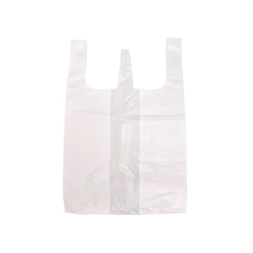 バイオマスプラ27%配合の環境配慮型レジ袋。ピザやオードブル、ケーキ箱などの大型容器もスマートに収まる白色の持ち帰り袋です。