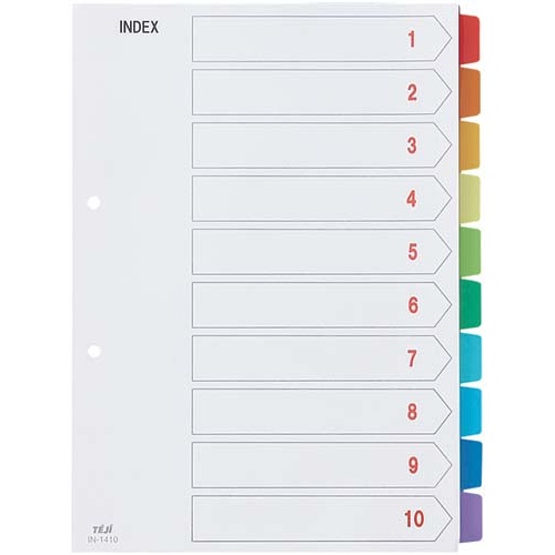 A4サイズ、10山のカラーインデックス5組セット。丈夫なPP製で、資料の分類・検索に最適です!