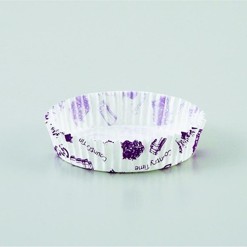 内面PET加工の紙製トレーで、そのままオーブン焼成が可能。カントリータイムセピア柄が、焼きたてのお菓子を魅力的に演出します。