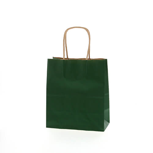 落ち着いた印象のグリーンの手提げ紙袋。コンパクトな人気のサイズです。クラフト紙に緑ベタを印刷しているため、ナチュラルな印象を与えてくれます。