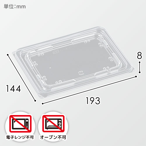 サイズが193×144×高8mmの容器用の蓋。テイクアウトやパッケージ用などにいかがでしょうか。