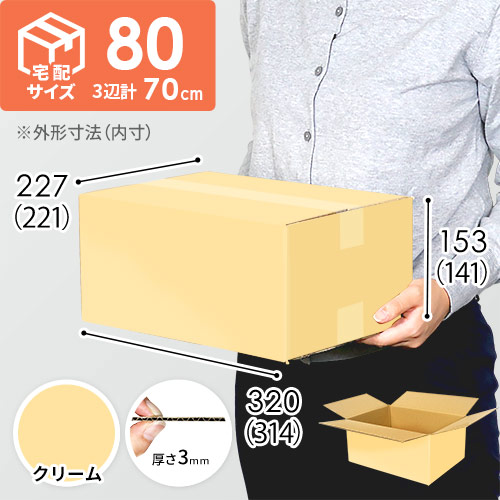 表面にクリーム色のカラーライナーを使用した宅配80サイズのダンボール箱。高級感ある見た目に仕上がるため、通販商品の発送におすすめです。
