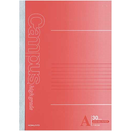 コクヨの定番、キャンパスノート。セミB5サイズ、5mm方眼罫、30枚、5冊パック。JIS規格品です。