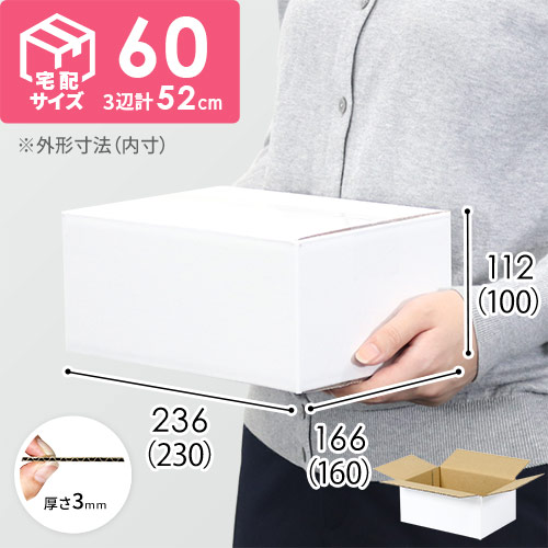 内寸230×160×100mmで、宅配60サイズに対応したダンボール箱。食品・飲料・お酒類を扱うお客様におすすめの仕様です!