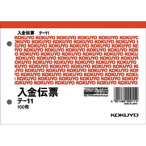 コクヨの入金伝票(消費税欄有/B7ヨコ型)。100枚綴り×10冊セット。
