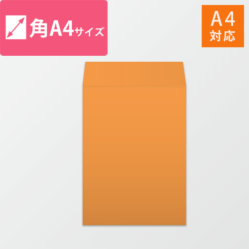 A4用紙がピッタリ入る、一般的な厚さの角A4封筒。色はオレンジで、シンプルな仕様です。書類・サンプル・小型商品の定形外郵便発送にいかがでしょうか。