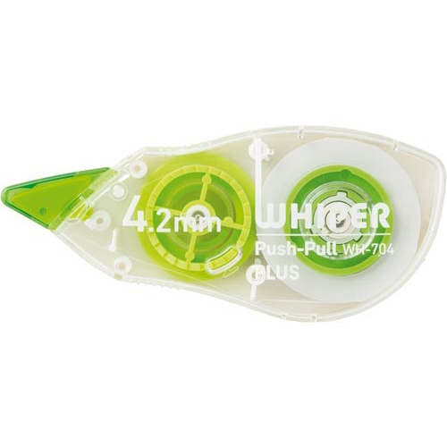 ビジネスシーンに映えるグリーン。2WAY機能搭載で、1行も1文字も修正可能!テープ幅4.2mm。