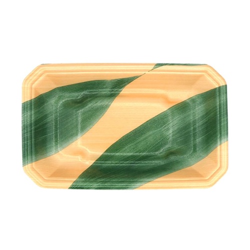 エフピコFLステージシリーズの鮮魚トレー。杉葉らんデザインが新鮮な魚の彩りを引き立て、売り場を上品に演出します。