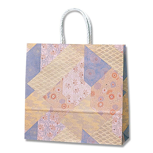 サイズは幅320×マチ115×高320mmで出し入れスムーズな手提げ紙袋(和柄)。正面の見た目が正方形。お菓子などのギフトに!