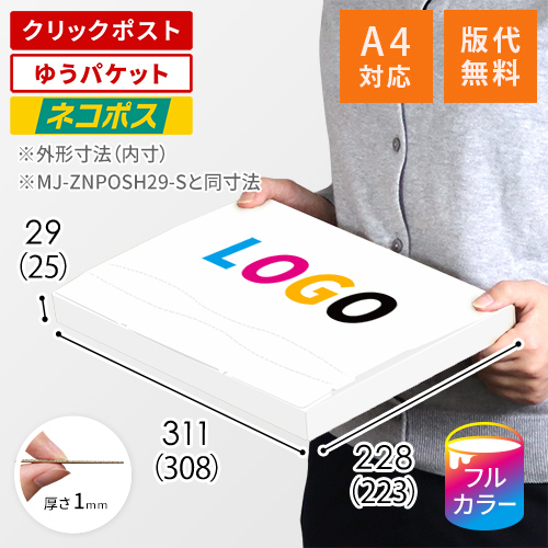ネコポス最大サイズ、底面A4サイズの名入れ印刷メール便ケース(MJ-ZNPOSH29-Sと同寸法)