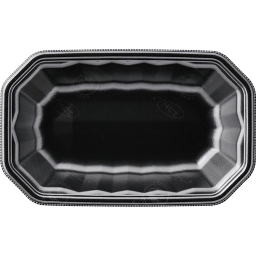 エフピコ製メガプレート平。PSP素材の軽量発泡トレーで、エコ黒が食品を引き立てます。幅広い食品の包装に。