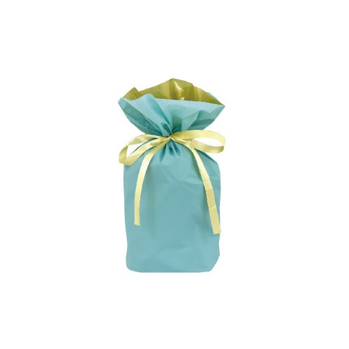 梨地ポリ巾着袋。リボンを引っ張るだけの簡単ラッピング。二重袋で高級感アップ。Mサイズ、ミント、20枚入り。