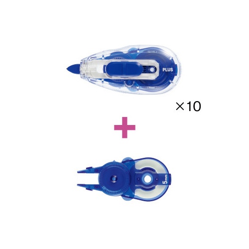 ペン先で削れにくいテープで、スラスラ上書き!5mm幅の青色で、本体10個と詰替1個のセットです。