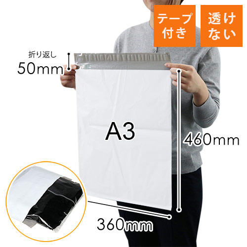 【ダンボールワンオリジナル】水に強いポリエチレンを使用したA3サイズの梱包用袋です。