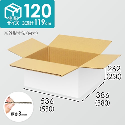【宅配120サイズ】ダンボール箱(530×380×250mm)3mm B/F 白C5×C5