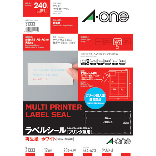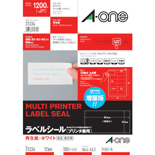 再生紙のラベルシール。サイズ:42.3×86.4mm。