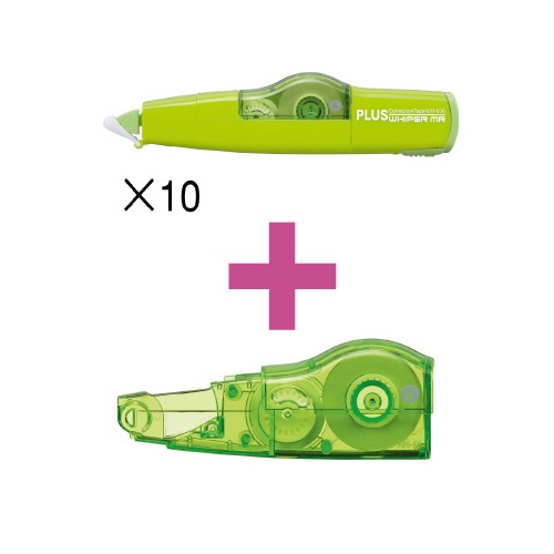 ペン先で削れにくいテープで、スラスラ上書き!4mm幅、ライムグリーン。本体10個+詰替1個のセット。