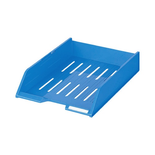 コクヨのスタッキングトレー。A4タテ型で、青色。簡単に積み重ねて使え、整理整頓に便利!
