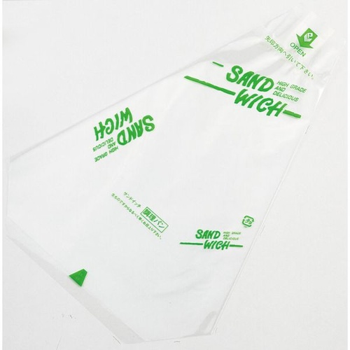 開けやすい緑のつまみと曇りにくいOPP防曇素材で、サンドウィッチの鮮度と美しさを長持ちさせるプロ仕様の包装袋です。