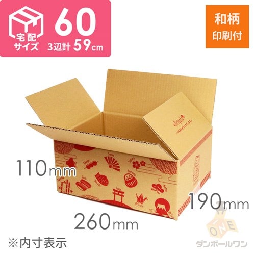 全面に歌舞伎や桜などの和柄が印刷された、宅配60サイズで発送できるダンボール箱です。