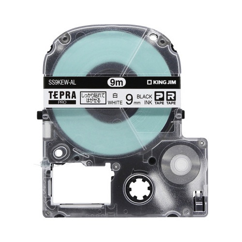 キングジムの「テプラ」PROテープカートリッジ。白ラベル/黒文字。テープ幅9mm、長さ9m。