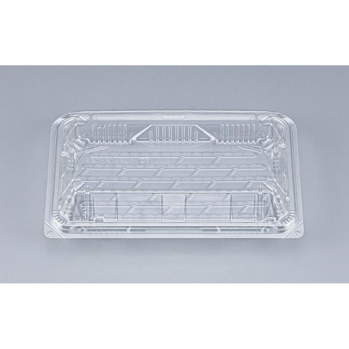 挽肉約150g用の透明トレー。中身がするっと取り出せるピラミッドリブとエコAPET素材が特長です。