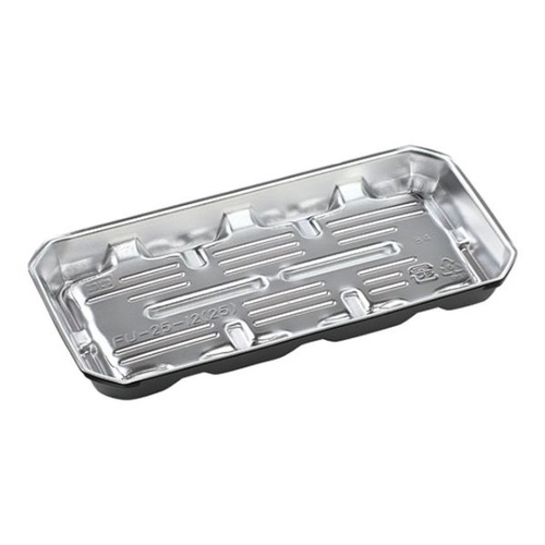 エフピコFLB-Aシリーズの発泡トレー。エコ黒木銀の豊かな表情が商品を引き立て、軽量設計と日本品質が安心を提供します。