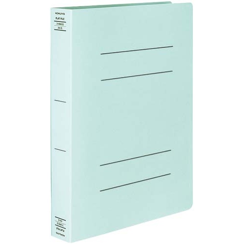 A4タテ型、青色のフラットファイル。とじ具が簡単に開閉でき、書類を約150枚まで収容可能!