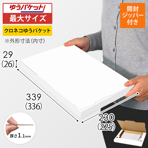 クロネコゆうパケット・クリックポスト・ゆうパケットに対応!厚さ3cmの白色N式メール便ケース。